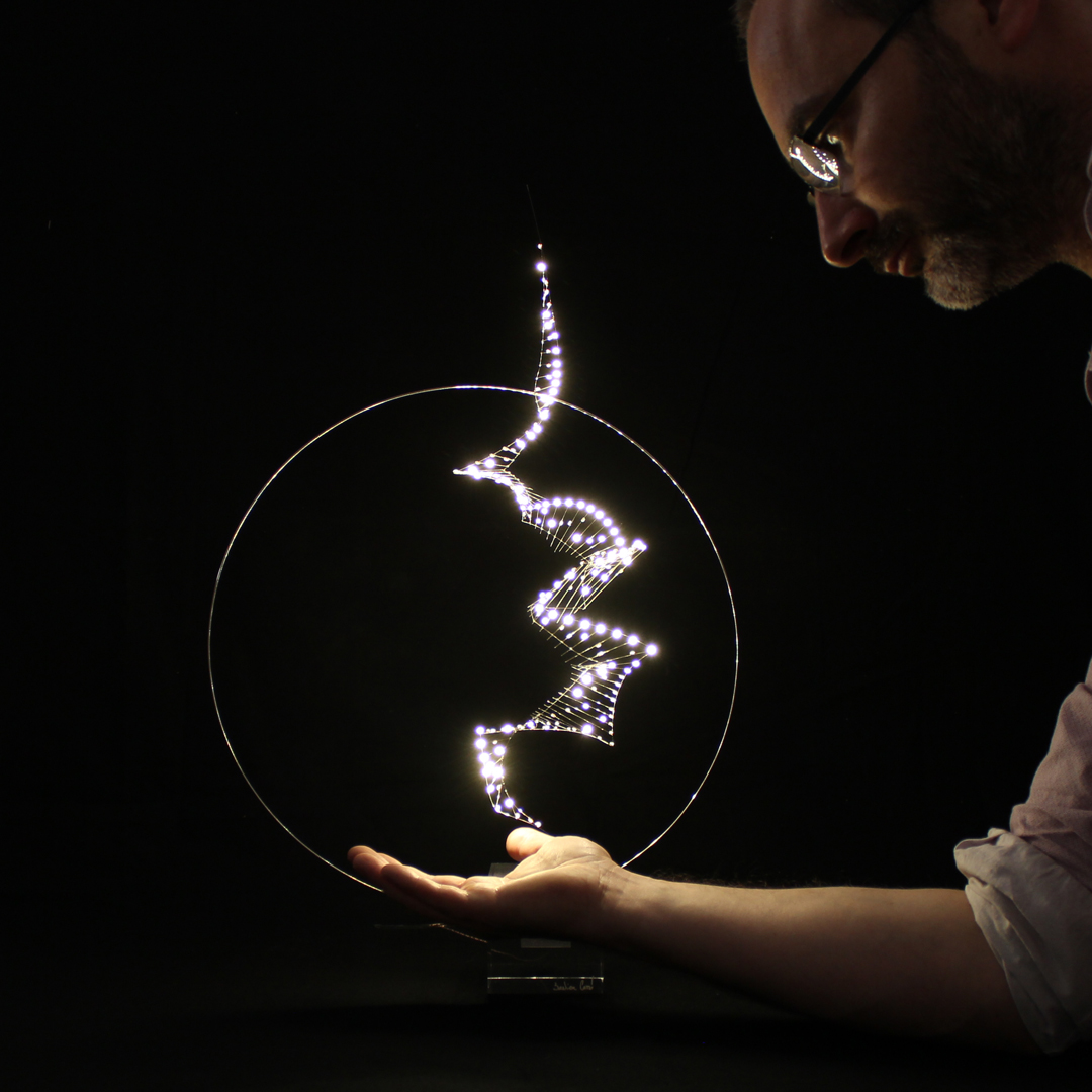 ... réalise tableaux, sculptures et mobiles avec des leds depuis plus de 10 ans. Ses "lumigraphies" ont conquis le milieu professionnel et l'ont amené à travailler avec de grandes maisons de luxe, des architectes ou des collectionneurs internationaux. Habitué à relever les défis pour répondre aux commandes sur-mesure ou pour créer des pièces toujours plus à l'avant-garde, il sent progressivement émerger le besoin d'ouvrir son propre espace d'exposition. L'ancien couvent de St Cyprien, qu'il rachète en 2017, va lui offrir la possibilité de magnifier son travail grâce à son cadre d'une rare singularité.
